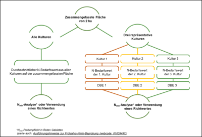 Für den kleinstrukturierten Gemüse- und Erdbeeranbau gibt es die Möglichkeit, mehrere Schläge und Bewirtschaftungseinheiten, die jeweils kleiner als 0,5 ha sind, für die Zwecke der Düngebedarfsermittlung (DBE) zu einer Fläche von 2 ha zusammenzufassen. Für die Zusammenfassung der Fläche von maximal 2 ha gibt es keine Vorgaben hinsichtlich der Kultur, Bewirtschaftung und Historie der Fläche.
